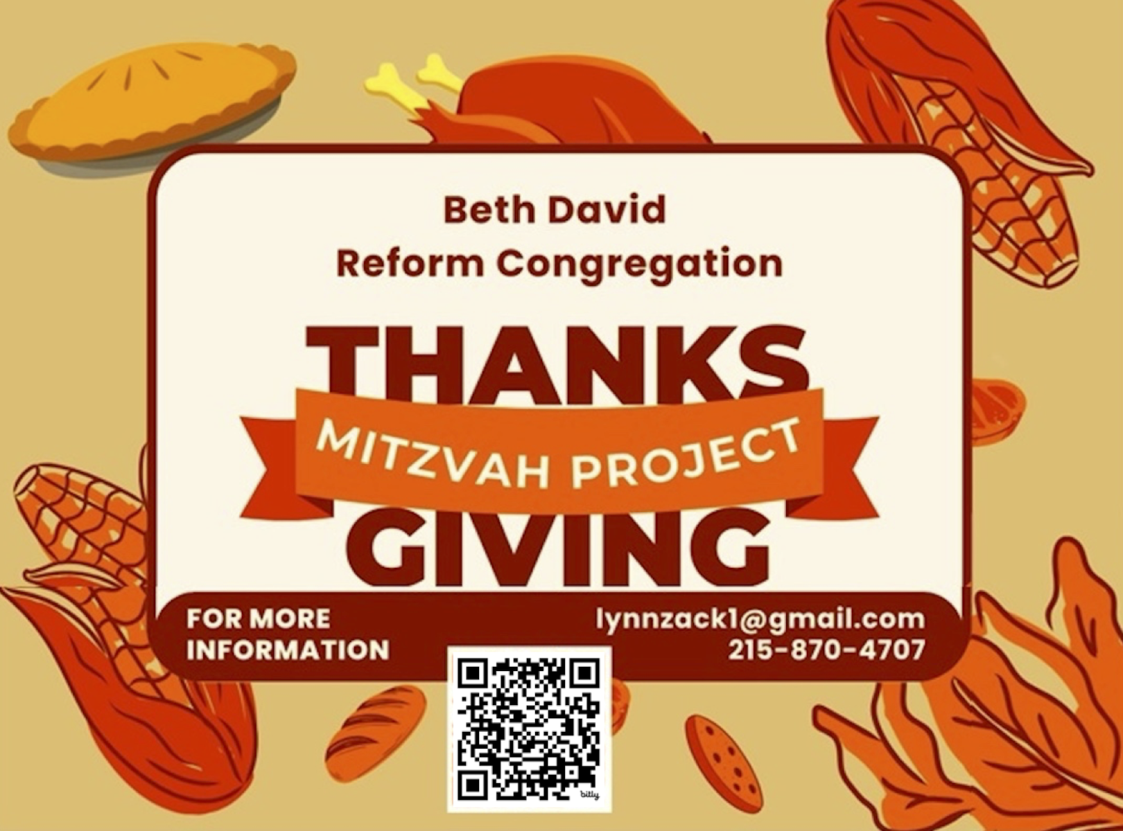 Help make this Thanksgiving special for families in need by giving generously to our 2025 Thanksgiving Mitzvah Project. For questions or more information, please contact Lynn Zack.